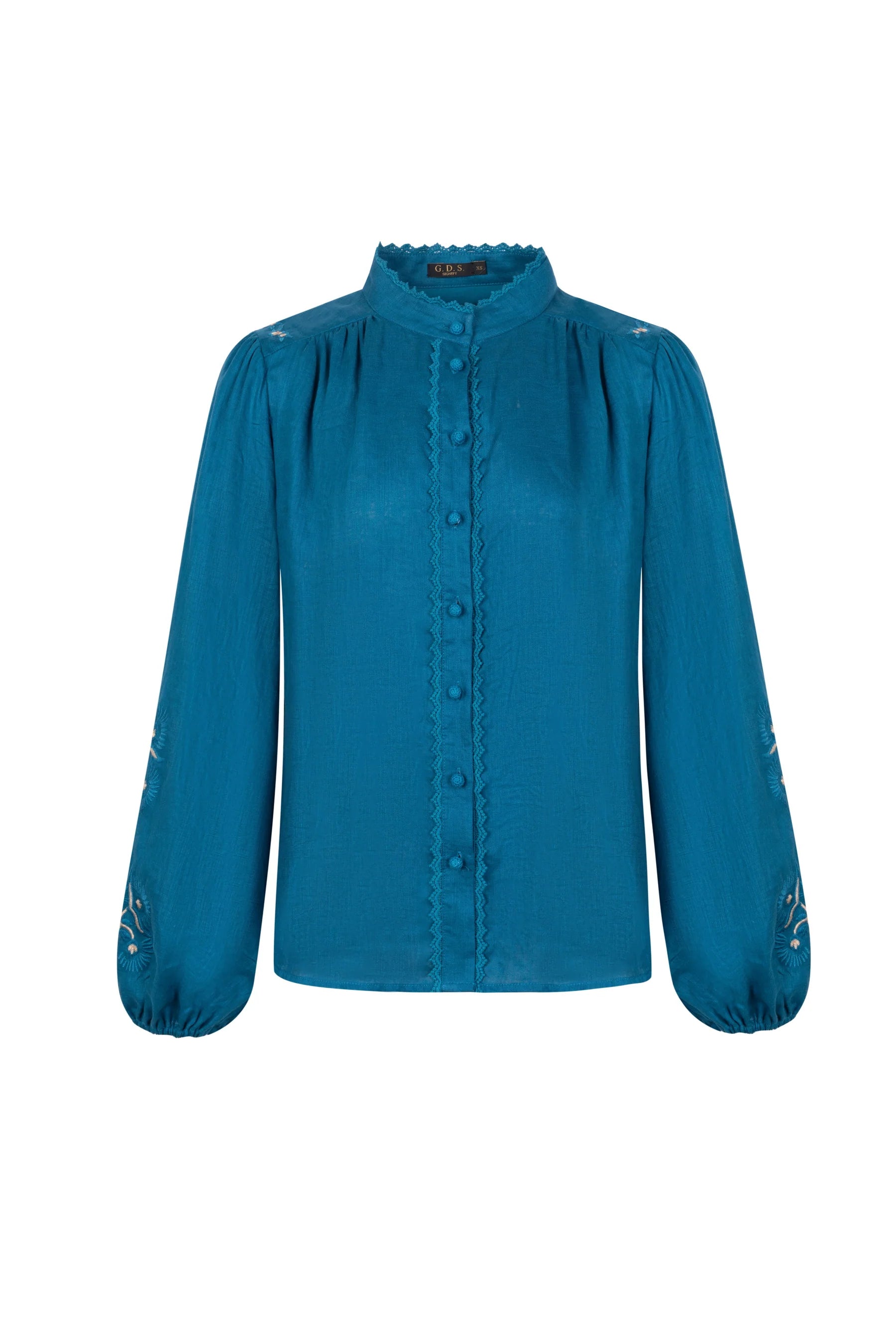 GDS Kierra Linen Button Blouse | Mosaic Blue