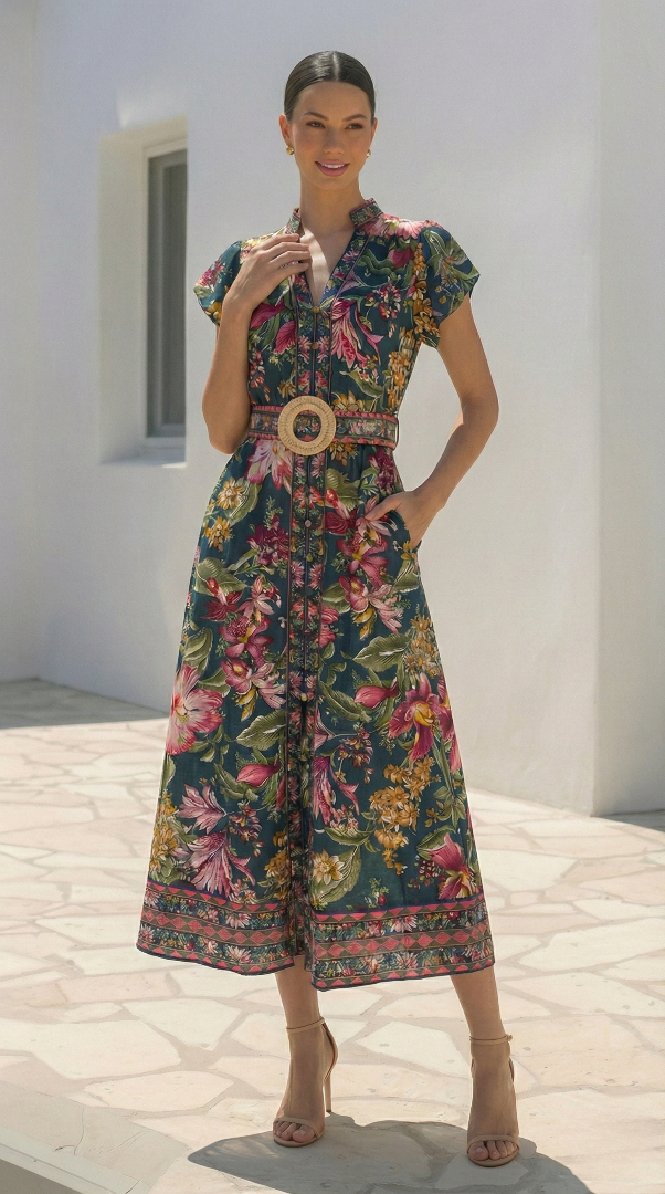 The Paradiso Dress in Green is your go-to piece for occasions that call for understated elegance. Featuring a striking green print and graceful midi silhouette, this dress effortlessly transitions from daytime gatherings to evening events. The flattering cut ensures you'll feel confident and polished, while the vibrant hue commands attention without demanding effort. Style it with tan heels and delicate gold accents for a look that's both refined and memorable. Invest in a dress that works as hard as you do—timeless, versatile, and undeniably chic.