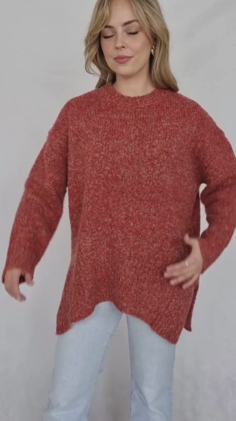 Wrap yourself in luxury with this relaxed-fit sweater in a rich, warm hue. The textured knit and longer length make it both cozy and on-trend. Perfect for layering or wearing on its own, the classic crewneck and long sleeves offer comfort and style. Elevate your wardrobe with the Ollie Jumper.